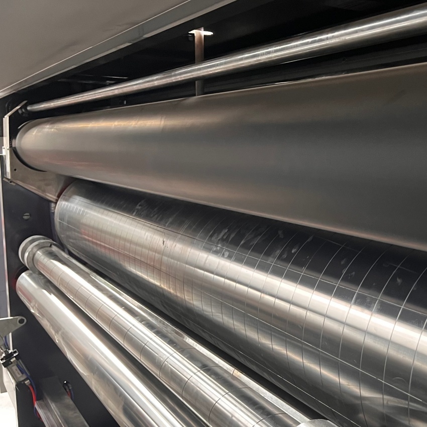 • Printing Unit: Uses flexible photopolymer plates with ceramic anilox roller and doctor blade system to deliver high-definition, uniform water-based ink prints